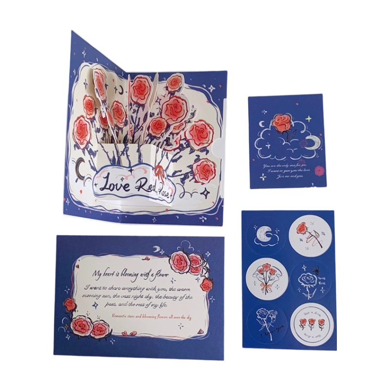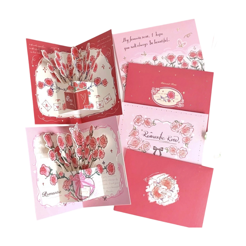 Romantic Love Themed Greeting Cards with Red Envelopes-Heart&Floral Designs