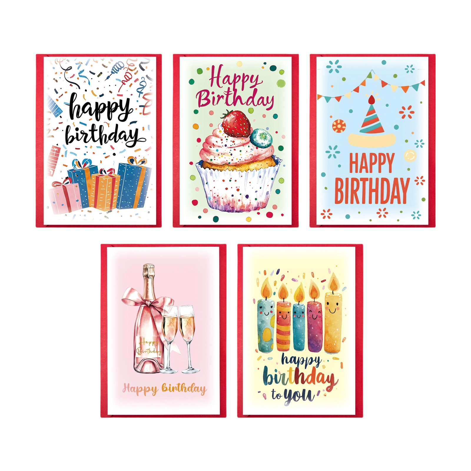 Colorful Happy Birthday Greeting Cards with Red Envelopes