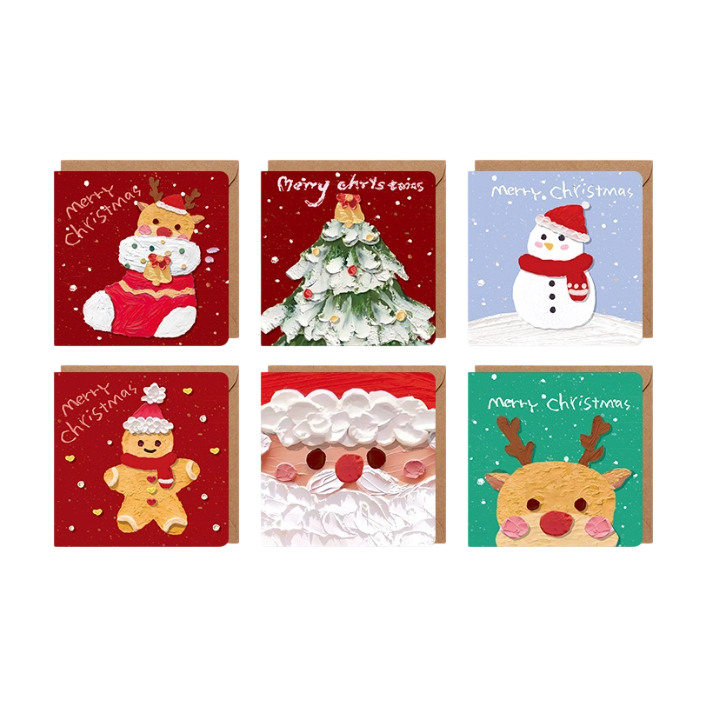 Cute Textured Oil Painting Style Merry Christmas Greeting Cards with Kraft Envelopes