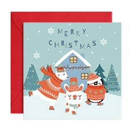 Cute Cozy Winter Village Christmas Greeting Cards with Red Envelopes-Santa&Snowman Designs