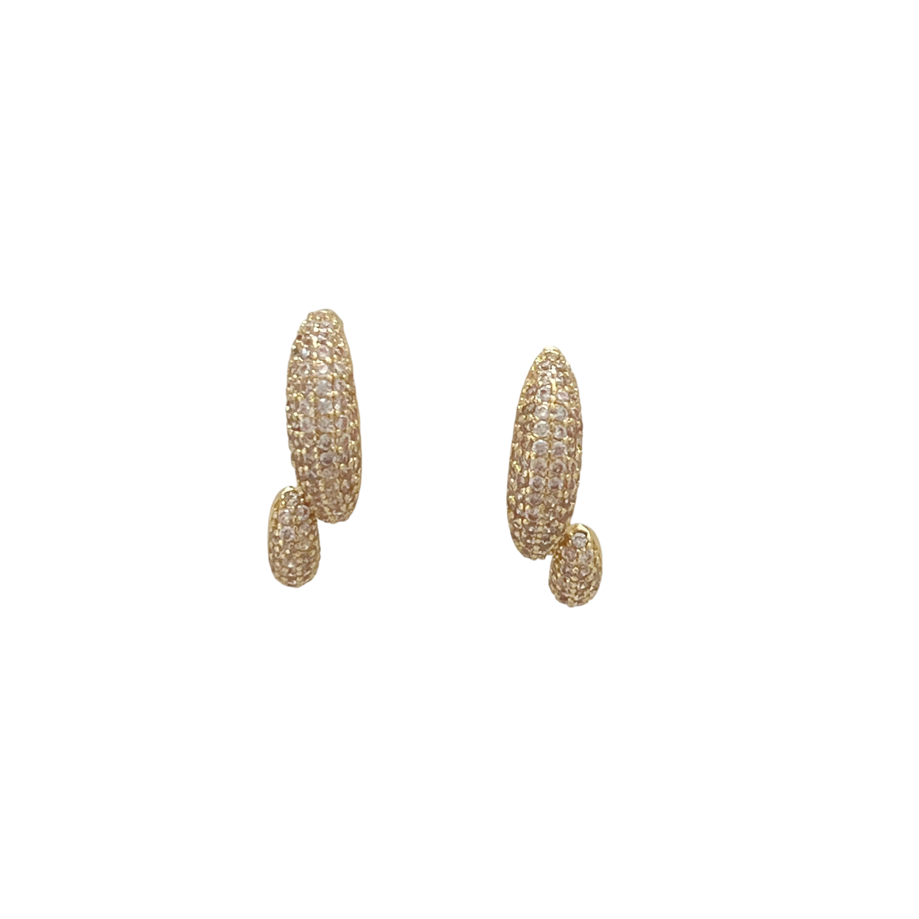 Gold Paved Crystal Double Oval Stud Earrings