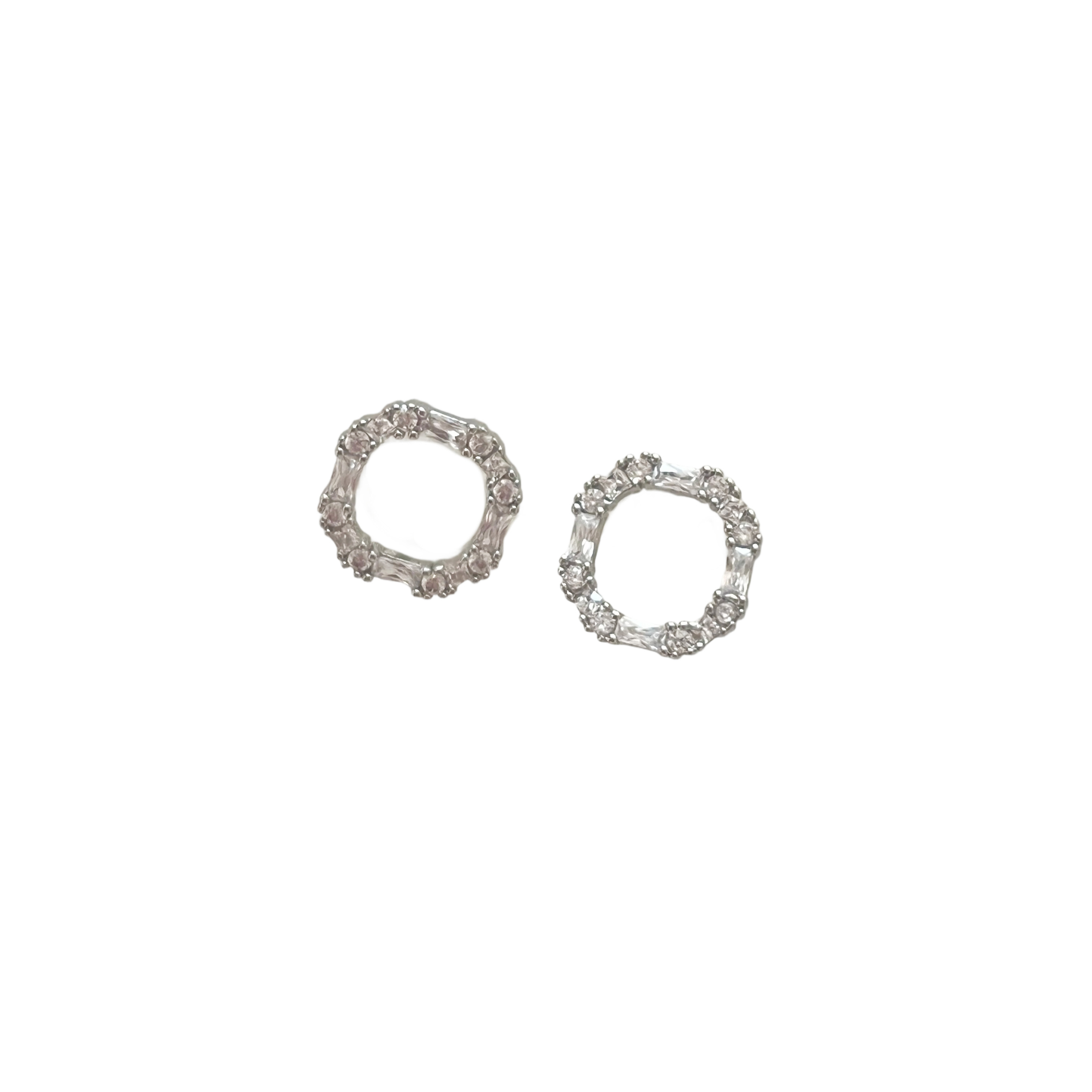 Silver Crystal Wavy Square Ring Stud Earrings