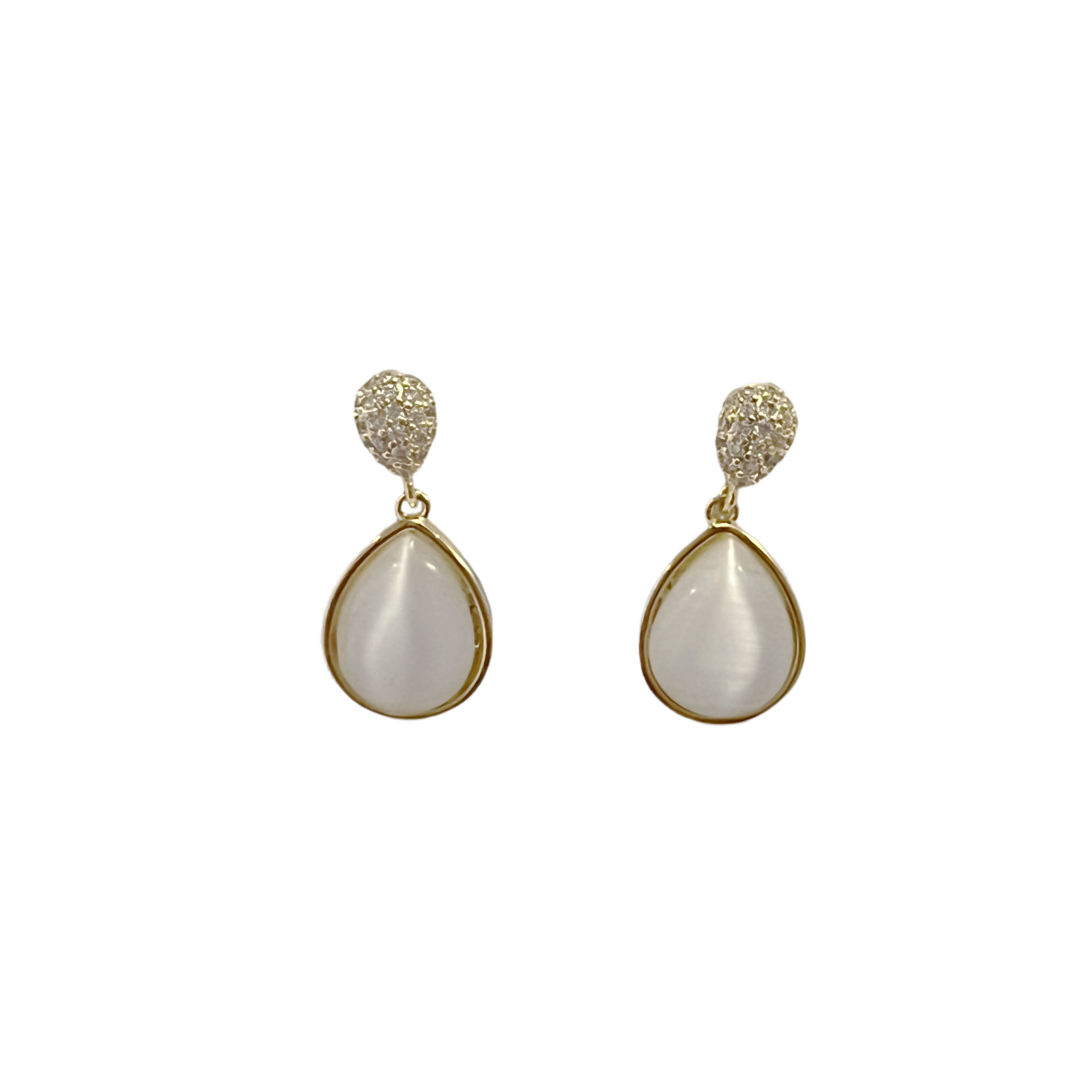 Gold Paved Crystal7Cat's Eye Teardrop Drop Earrings