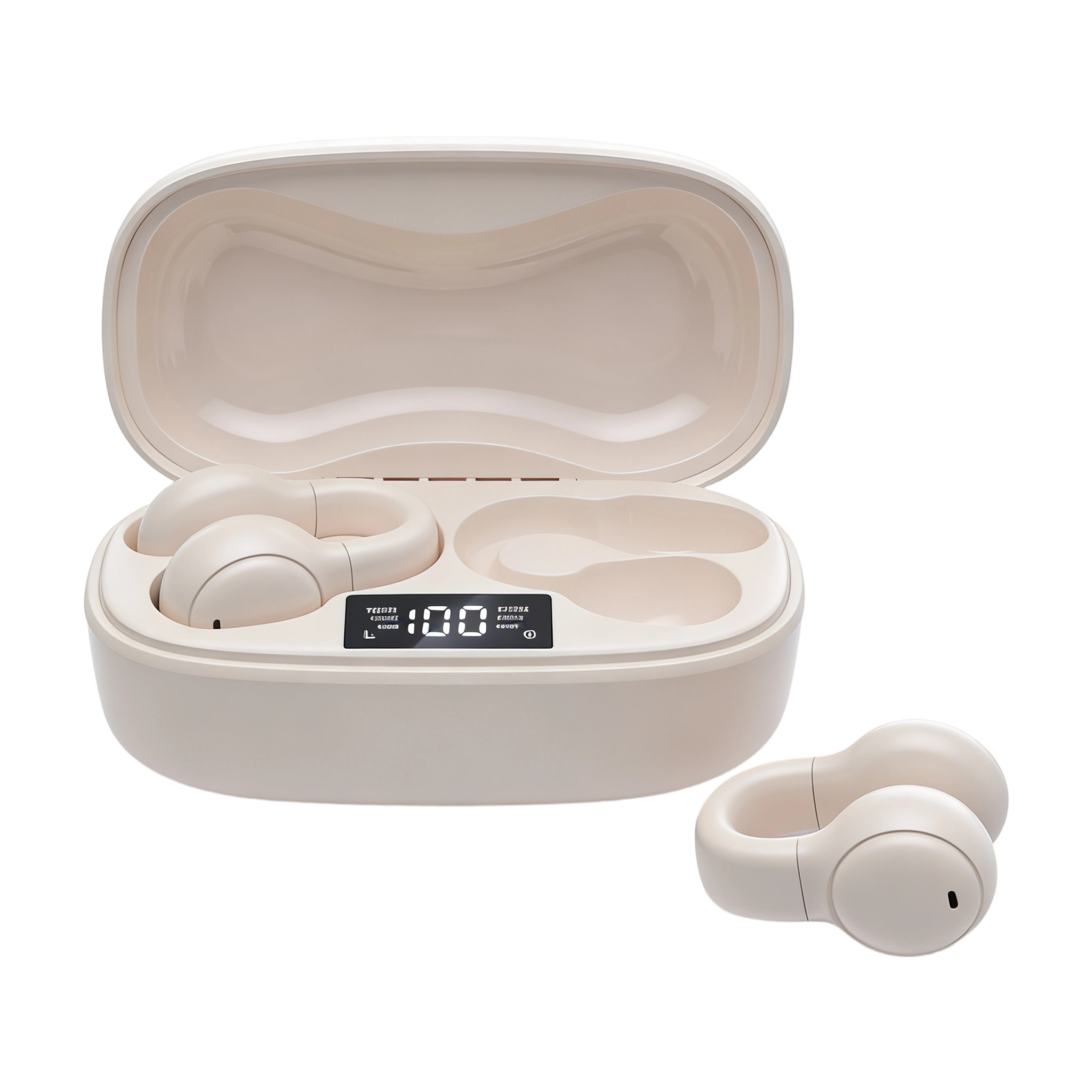 Clip-On Open-Ear Wireless Earbuds with LED Digital Display