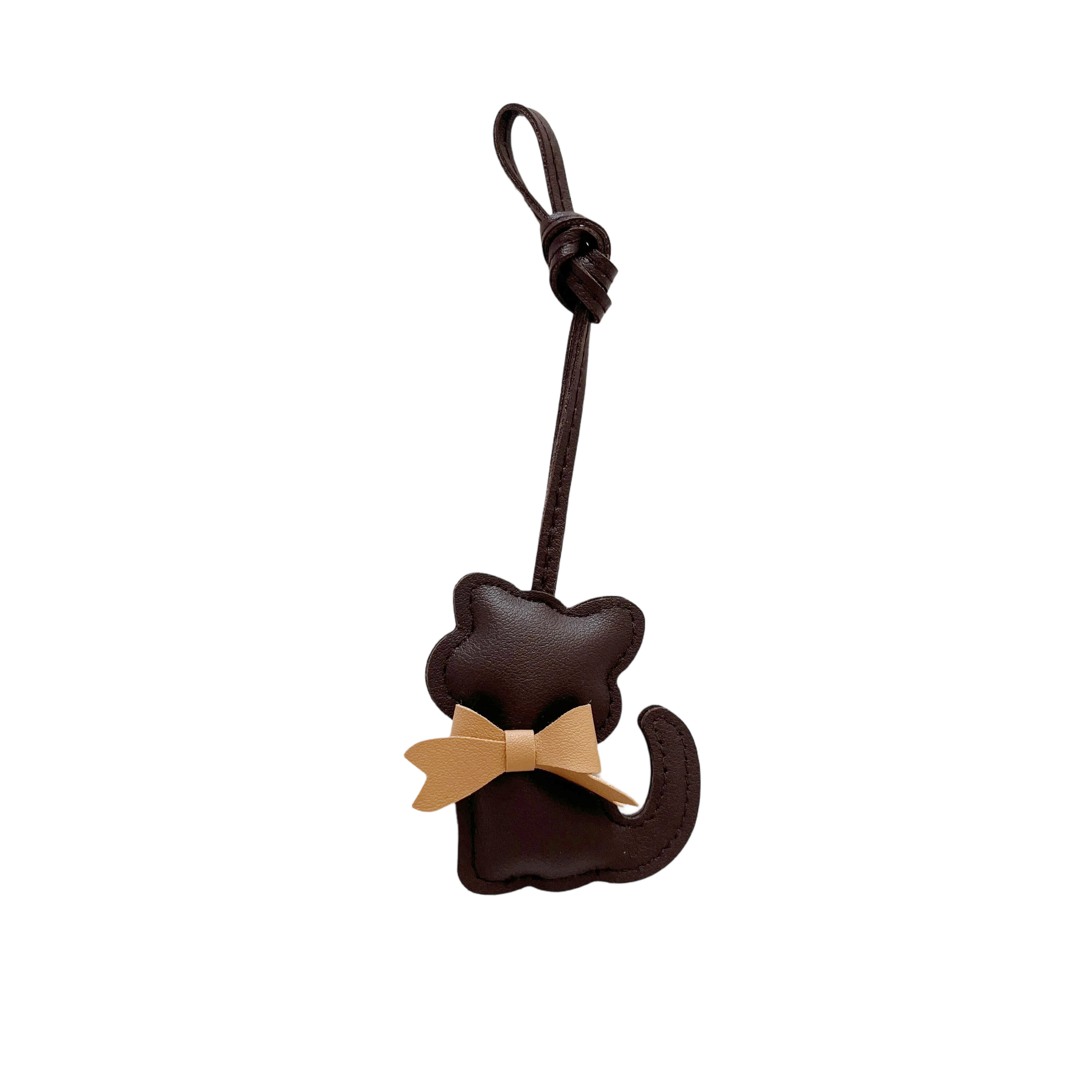 Brown Leather Cat Charm with Tan Bow