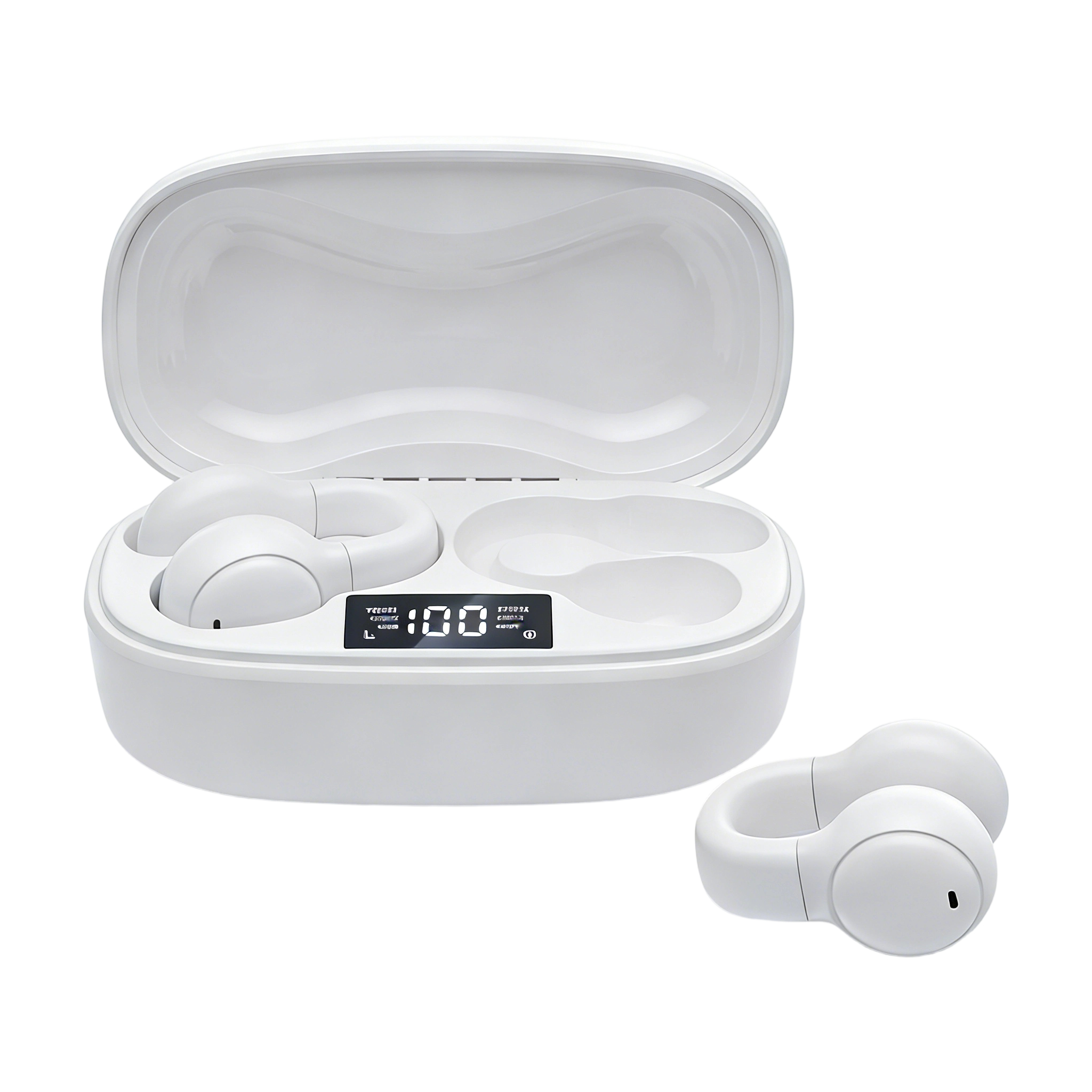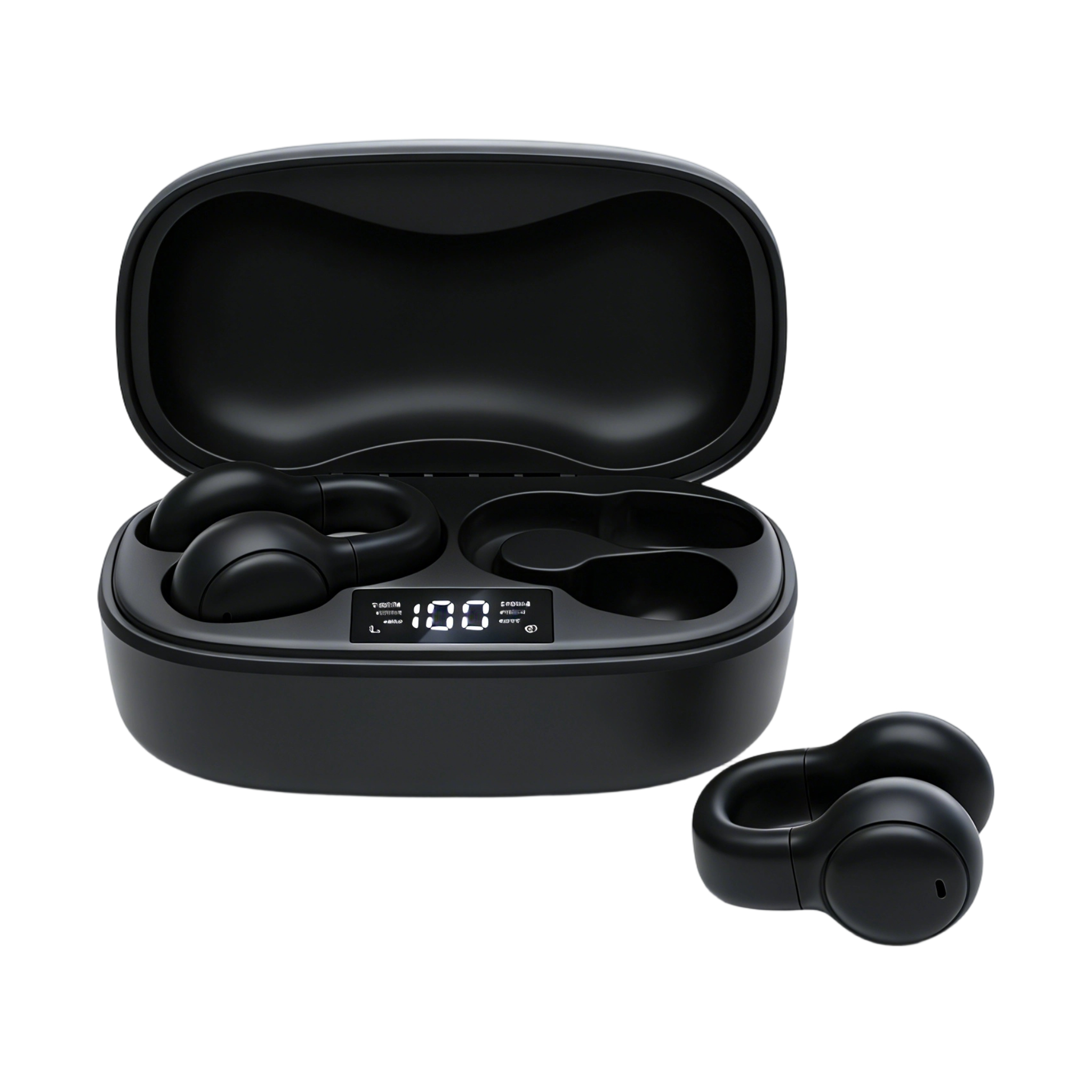 Clip-On Open-Ear Wireless Earbuds with LED Digital Display