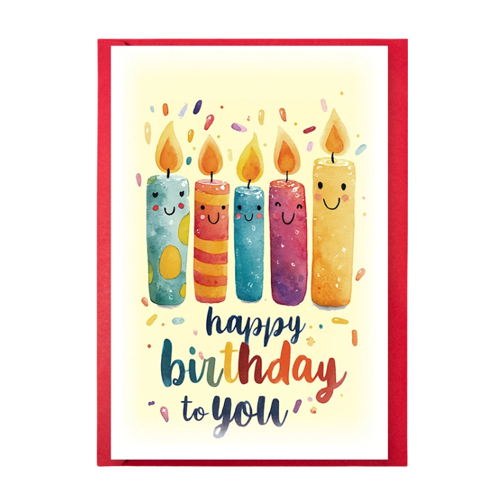 Colorful Happy Birthday Greeting Cards with Red Envelopes