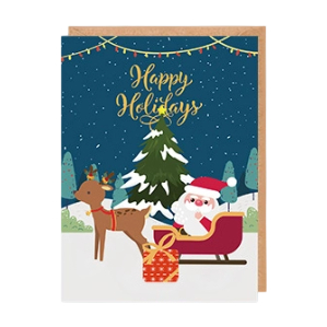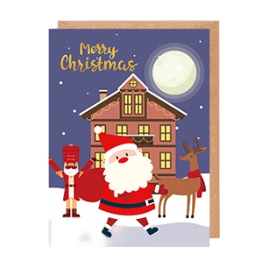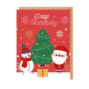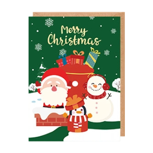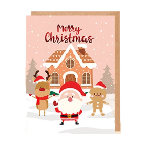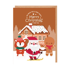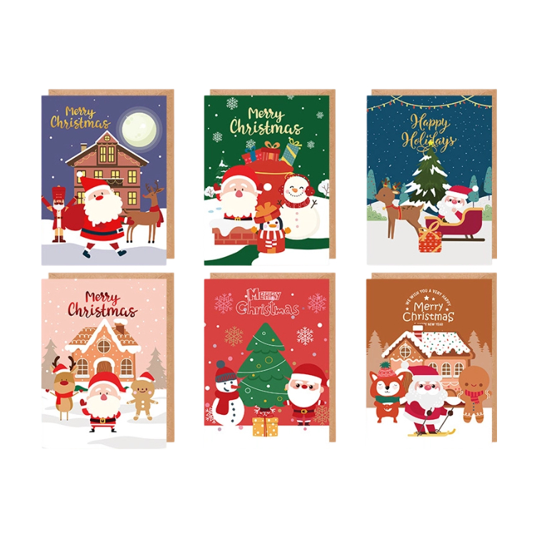 Cute Cartoon Sant &Friends Merry Christmas Greeting Cards with Kraft Envelopes