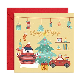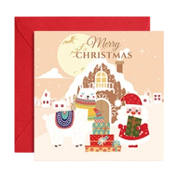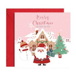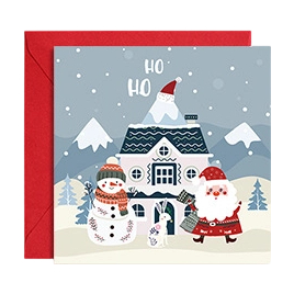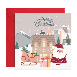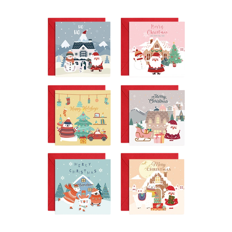 Cute Cozy Winter Village Christmas Greeting Cards with Red Envelopes-Santa&Snowman Designs