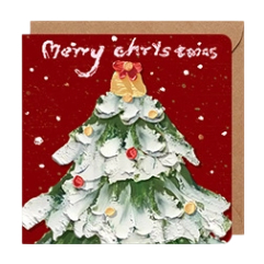 Cute Textured Oil Painting Style Merry Christmas Greeting Cards with Kraft Envelopes