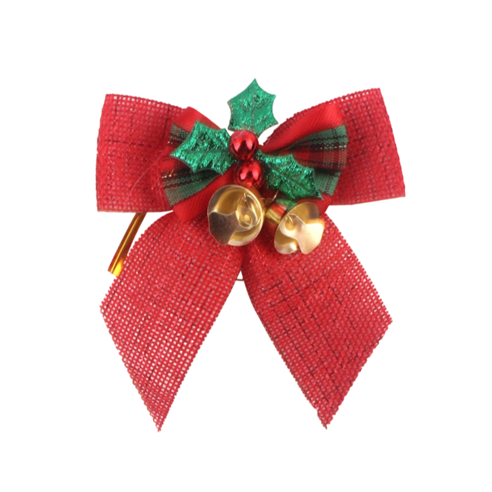 Red Mesh Christmas Bow with Holly&Gold Bells