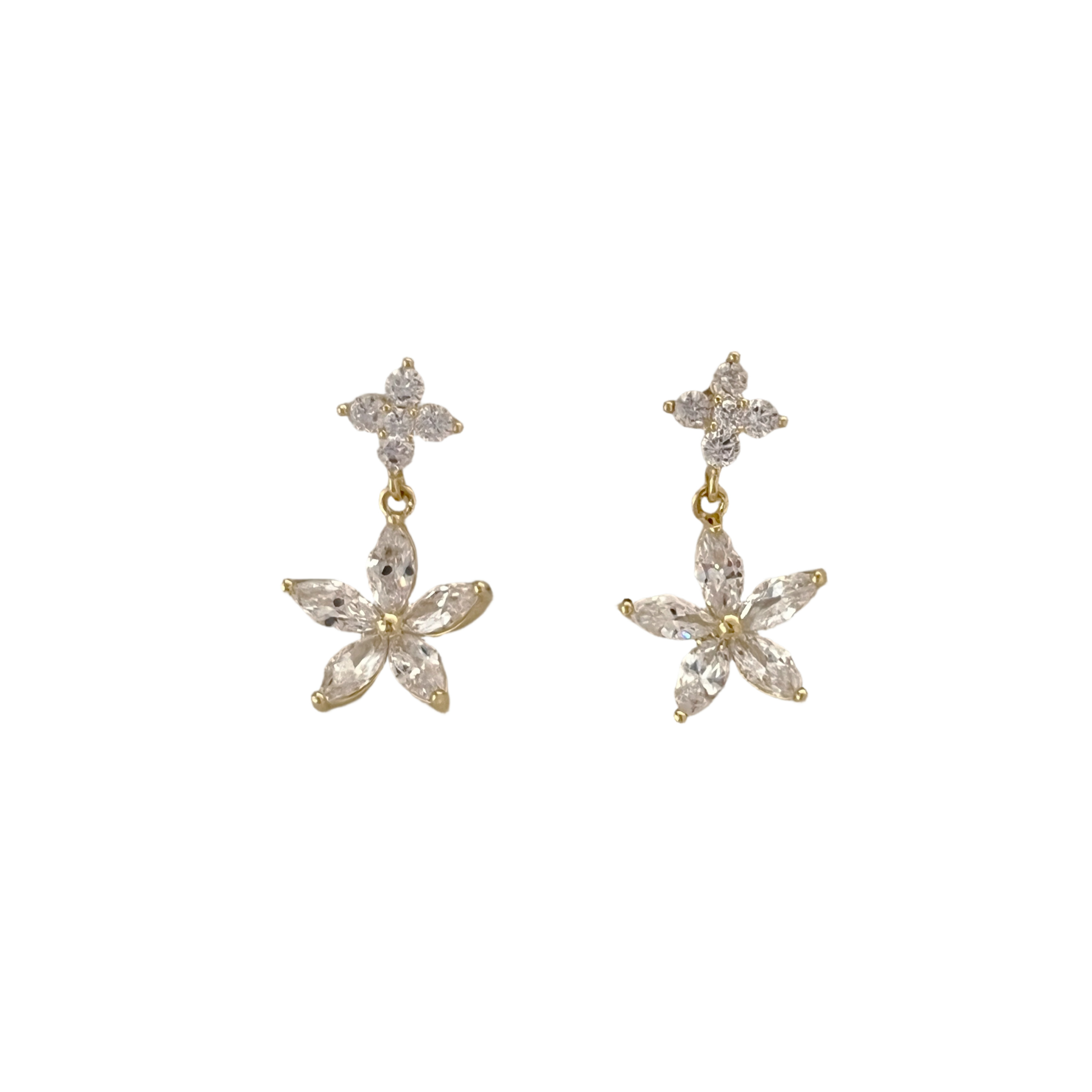 Gold Double Floral Crystal Drop Earrings