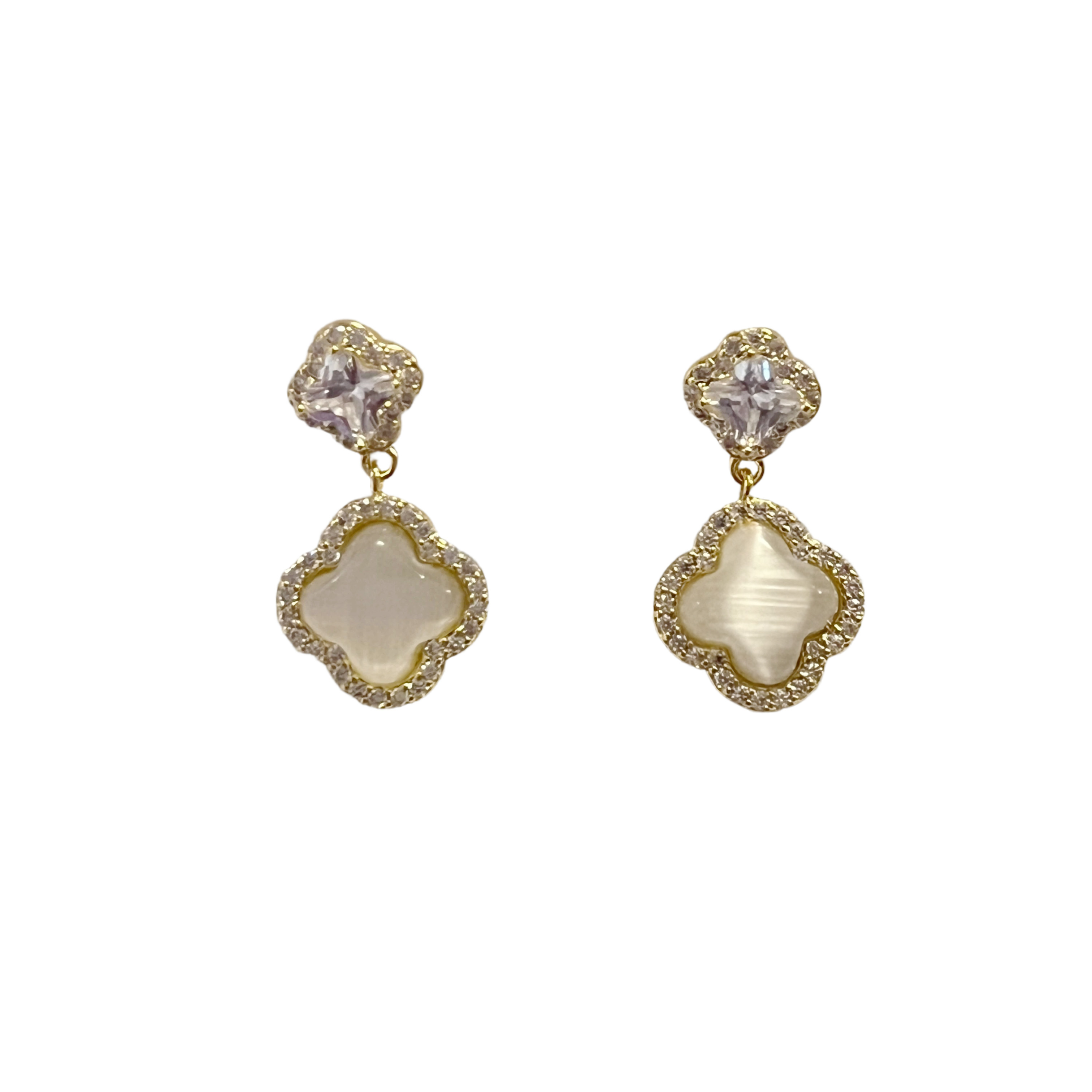 Gold Star Crystal&Cat's Eye Four-Leaf Clover Drop Earrings