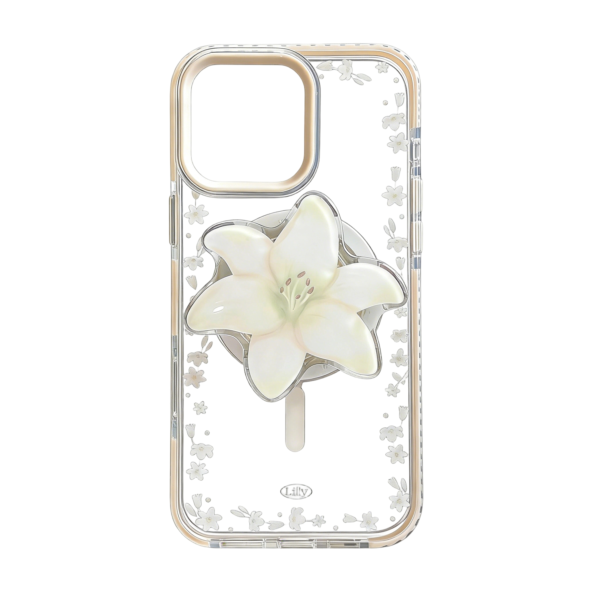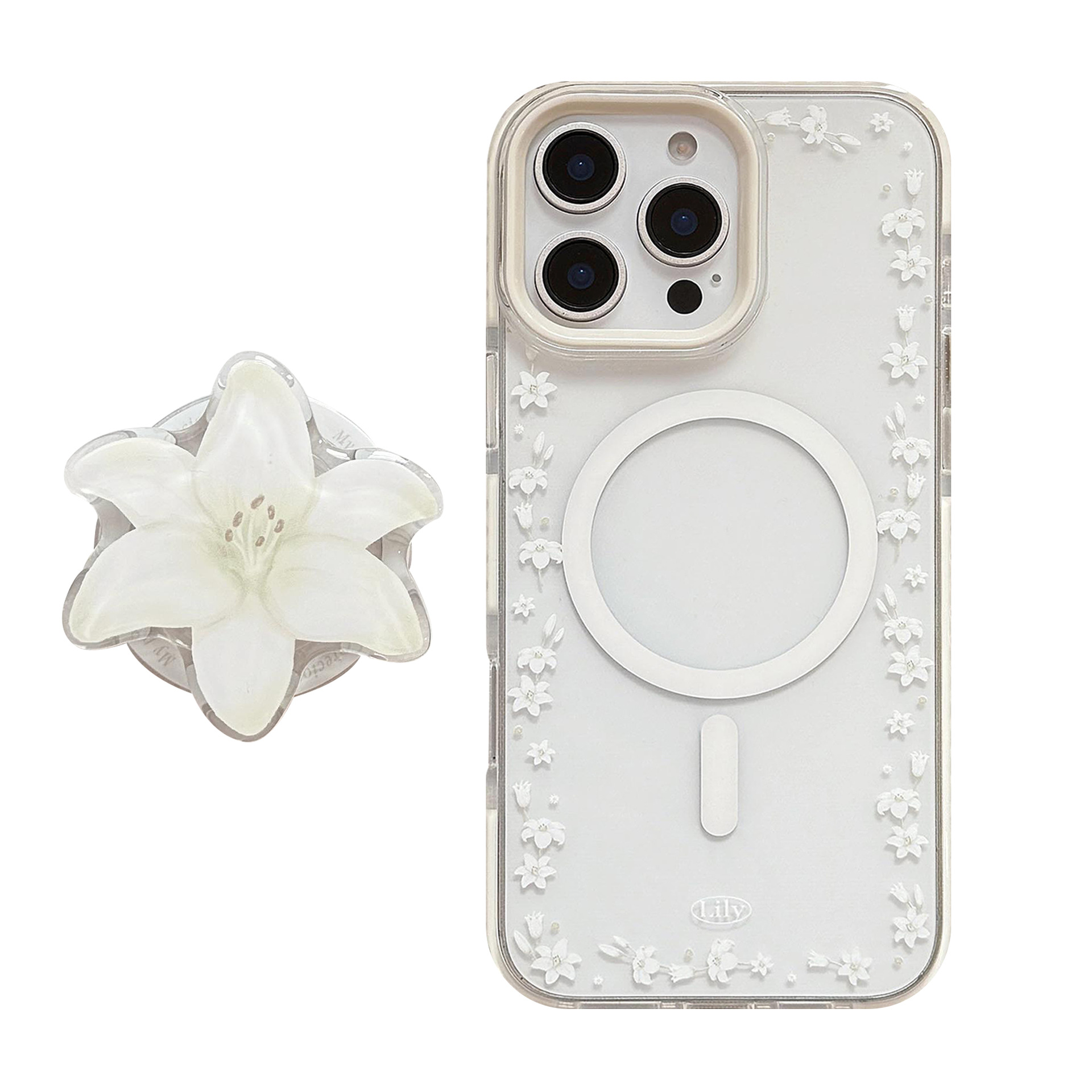 White-Edged Magnetic Lily Floral Border Case + Lily Magnetic Grip Stand