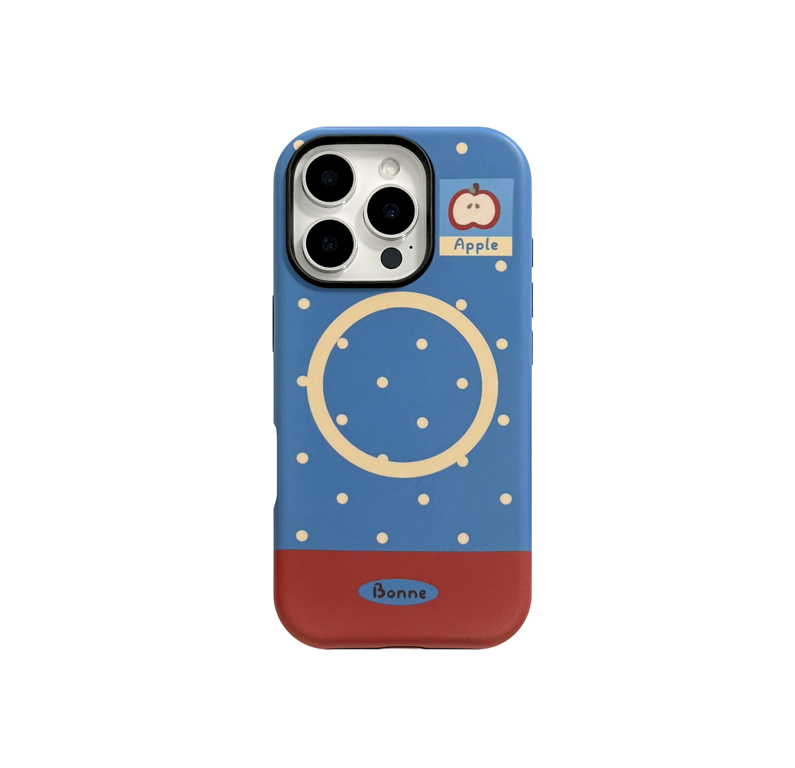 Magnetic Blue & Red Contrast Dot Case + 3D Half Apple Red Base Magnetic Grip