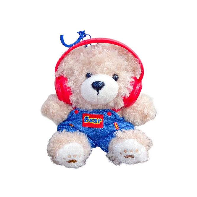 Retro Denim Bear Plush Charm with Headphones