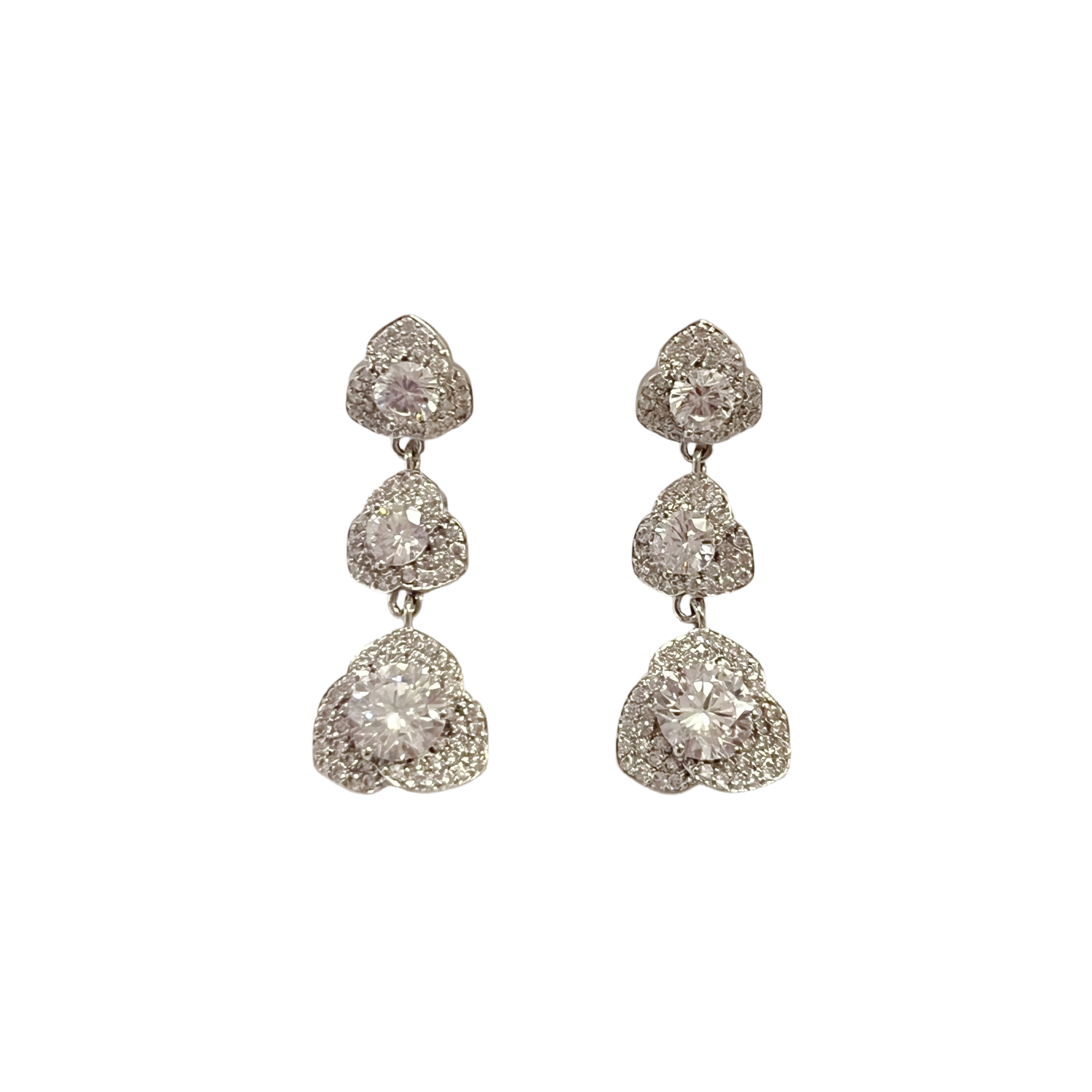Silver Triple Floral Paved Crystal Drop Earrings