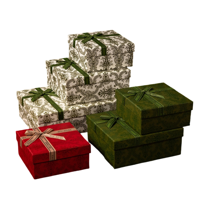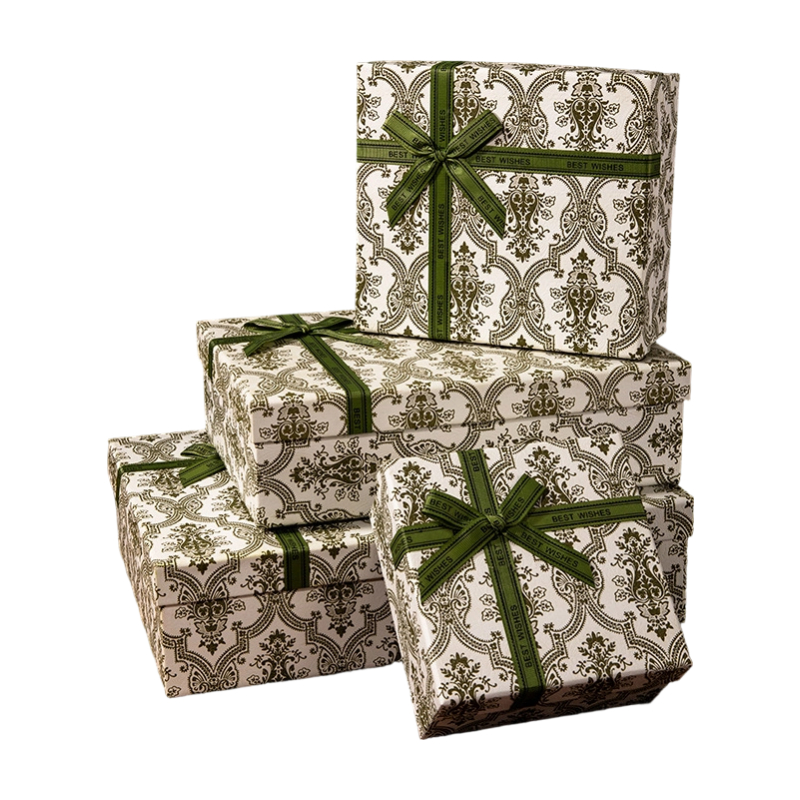 Vintage Damask Pattern Gift Box Set with Satin Ribbon
